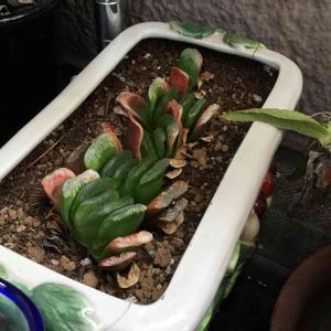 初投稿記念に うちのハオルチアです。 オブツーサは花芽が出そう。