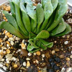職場の癒しハオルチアとして仲間入りさせた「グリーン玉扇」です。 万象や玉扇って、本当に面白い形をしてますよね。そして、そこそこ高価なお値段。。。(^_^;)。しかし、このグリーン玉扇は、リーズナブルで扱いやすい。迎え入れて1年くらいになるけど、まだ群生の兆候は見られません。この職場でまずは元気に育てよっと! (*^^*)