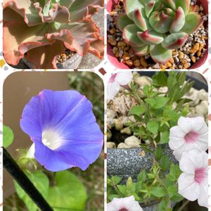 おはようございます😃 秋を満喫したいけど、明日から残暑戻るらしいです😓もういいのにね こぼれ種で蔓を伸ばして頑張ってた 朝顔さんお花咲きました♪もう夏は終わったけど、頑張りました😊種が着くまで見守ってみよう😆スーパーチュニアビスタシルバーベリーさん だいぶ株減ったけどまたお花さいてます🌸 多肉さんたち待っててね お手入れやるぞ! 色付き始めたチワワさんとシャビアナさん🩷