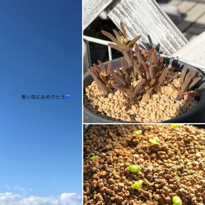 綺麗な青空ですよー。゚+.(*`・∀・´*)゚+.゚ 昨年の今日播種して一年です㊗️一歳✨ これで無事に育っているのかわかりませんが…とにかく良かった🍀 下は先月播種した子達です✨ 今年は黒ポット飛ばされないように気を付けよう…ウン
