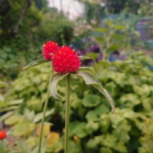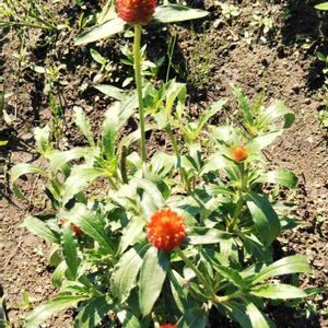 畑の隅で暴走中💠💠 千日紅かな?? 母担当花です(●´ω`●) 小さなイチゴみたいですね〜🌱