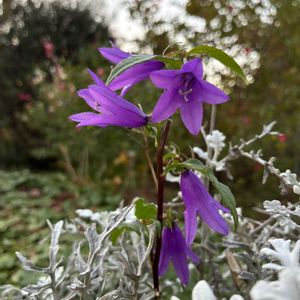 ハタザオキキョウがシロタエギクのなかで スッと咲いています💜🌿 後ろには、チェリーセージの赤い点々が🍒🤭 午前中は友人宅で伐採した"カイヅカイブキ"を 薪用にもらってきました🪵 一年寝かせて、来年用です🔥 夕方はお義母さんのデイサービスのお迎えを待ちながら、庭の落ち葉を畑の方へ! 一輪車山盛りで5往復🍂🖐‼︎ 🏷️美しく青きドヨウ 🏷️平和を願う🕊️ 📸16:31 投稿したつもりが、出来てなくて驚いている日曜日の朝です💦