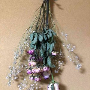 4月末の誕生日に頂いたバラとかすみ草です。大切な思い出を残す為にドライフラワーにして、スワッグに仕上がりました🎶😍💞