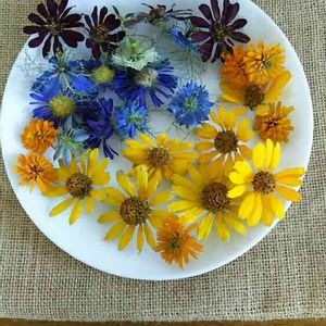 プレートアレンジ(笑) シリカゲルドライその2 向日葵🌻、アスターも綺麗にできた❗ ニゲラなんて生花そのもの👀‼