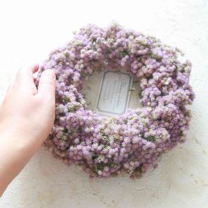 皆さんお久しぶりです🙇♀。 こちらはアゲラタムで作ったドライフラワーリース。 大量にお花を使いつつ、コツコツ制作を頑張りました… ふわふわな質感です💕