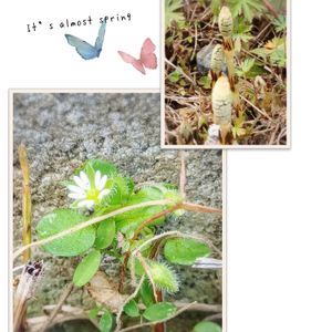 風が強くてさむっ🍃🍃 会社を休んだ日は、いつも食べてばかり🤷♀️ すこーしだけ散歩しようかな 🐾𓏸𓈒(ง ˙˘˙ )ว やっぱ寒いな:( '-' ):ブルブル 家の近くを少しだけ わァ~土筆 見っけ👀😆 可愛らしいお花はコハコベさんですか? 春は近くに来てますか?