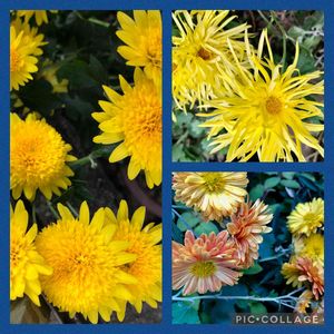 黄色の小菊3種が庭の片隅で咲き乱れてます🤗🌿💛🌿 手入れが足りませんね😅