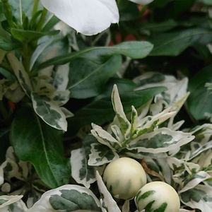斑入りソラナム スノーサンゴ 3年目 毎年冬に瀕死になりましたが無事3年目を迎えれました。葉っぱの斑具合がステキ💓 今回いつお花が咲いたのか見逃してしまった💧白い実からだんだん色づく姿が可愛いです🥰 ナス科ナス属 🏷️斑入りフェチ