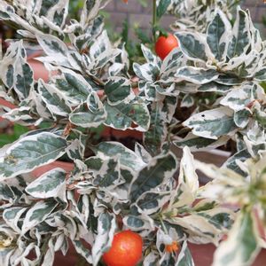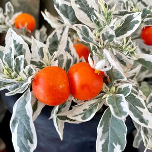 斑入りソラナム スノーサンゴ ナス科ナス属 低木一年草 斑入りの葉っぱが可愛い🥰白かった実も黄色オレンジと変化しています♪美味しそうだけど実は有毒だそう☠️ 🏷斑入りフェチ