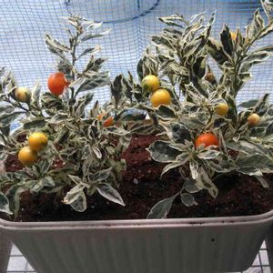 スノーサンゴ(斑入りソラナム)😃 春先だったかな?鳥(モズ)に、実を食べられてしまったので、鳥対策に、ネットを張りました😊