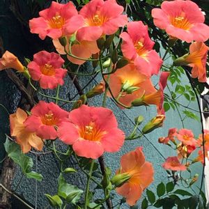 帰宅途中のお花ノウゼンカズラです🌸 今日の暑さでたくさん開花です💕 オレンジ色が可愛いですね(^_^)