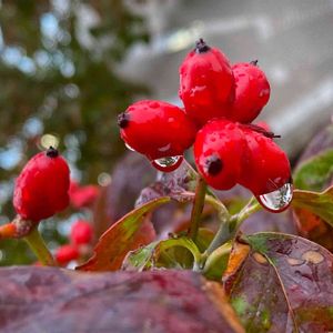 裏山にて。 昨日撮影 ガマズミの実が 雨に濡れて光ってます✧︎