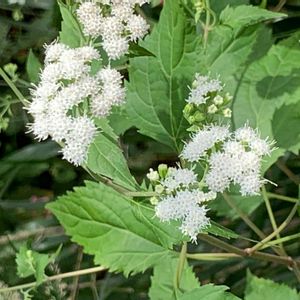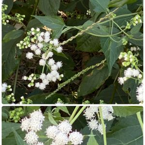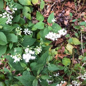 ずっと気になっていました☺️ マルバフジバカマで合っていますか? 間違っていたら教えてください🙇 <マルバフジバカマ>(丸葉藤袴) キク科アゲラティナ属 北アメリカ原産 別名 シロバナフジバカマ ユーバトリウム 花期 9~10月