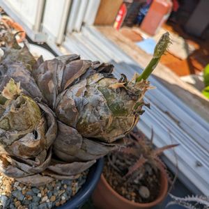 昨日からベランダ出しっぱなしにしたら、翌日(今日)に花芽が出てくるとか。 先日久しぶりにアプリ入ったら投稿画面とか変わっていてビックリ。今年も冬越しはほとんどベランダ出しっぱなし(※)にしたけど、脱落者は今のところいないかなぁ。 ※避難していたのは塊根、ディッキア、ヘクチア、写真の子くらいかな。サボテンは全てベランダ(簡易ビニール棚内だけど)。