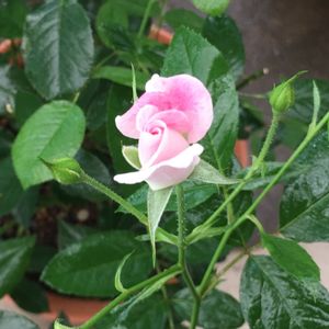 今朝のバラの様子。 やっぱりあなたが1番に咲きましたね!!
