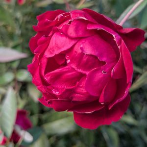 おはようございます。 道の駅にて バラ( 紅玉 ) 鉢植えされていました。 濃紅色で綺麗でした。