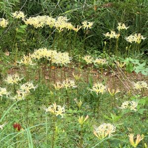なぜか白と黄色の彼岸花が咲きます 植えた覚えがないのですが、毎年咲いてくれます