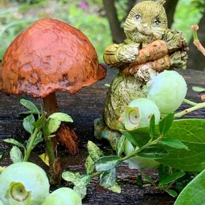 今夜のおかずみーっけ🐰 ウサギおばさんのはず😱 み、耳がない🐰 いつ間にか欠けている😢 ごめんなさい、耳見つからず😓 ジメジメしてるとかならず出てくる キノコさん🍄 枕木にも生えました💧 ブルーベリーは、誰かに 落とされた実😅 耳も、誰かが持っていった? ウサギおばさん🐰 人参、キノコ、ブルーベリーで 何作る? 🥕 🍄 🍓 🥘🍽
