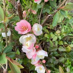 やさしい色 えっと…隣に紅い木瓜の花がありましたが、木瓜ですか?空き家になっているのにこのおうちにはシデコブシ、雪柳、クチベニスイセンなどなどわたしが知らなかった花木がたくさんなんです。