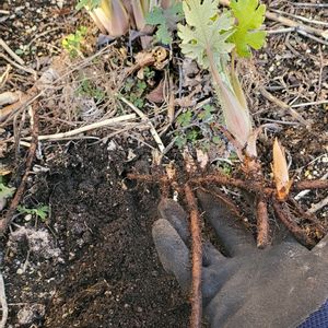 カーメン君ガーデンチャンネルで黒田邸を見たときに、雑草のタケニグサを庭にいれてるのを見た。へー!と思って去年、そこら辺の空き地に生えてたやつを庭に植えて今年で2年目。四方にタケニグサの芽が無数にでてきたので、こぼれ種かなと思って掘り上げたら、なんと全部地下茎!!これは取り返しのつかんことをしたかもしれん!! 掘っても掘っても無限に地下茎張り巡らされてる(笑) タケニグサの名前の由来は実はこの地下茎が竹に似てるからでは?? タケニグサ挑戦する方は必ず根止めを!