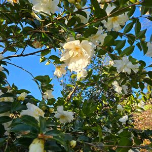 お向かいの花山🍀通信 ひっそり橋を渡り久々にお向かいの花山 行って来ました さざんか白 咲いてました☀