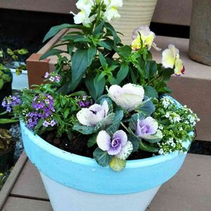 鉢が結構お高くて💦 そうだ‼️茶色の植木鉢だって塗れば可愛く出来るじゃん‼️ と思って先日の余りのペンキを使ってみました☺️ この色 とっても好きなんだよね😆 出来たら鉢も自分で作れないかなぁ🤔 退職したらそういう教室探してやってみよう🎵 と心に誓った私😄