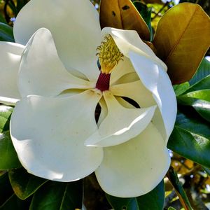 【泰山木】《モクレン科》 花言葉 「前途洋々」「自然への愛」「威厳」 別名 ハクレンボク 泰山木は、 北アメリカ原産の常緑高木で、 初夏に大輪の白い花を咲かせる 樹木です。 花の直径は 20〜30センチにもなり 日本の花木では 一番大きな花を咲かせることが 特徴です。 マグノリアの仲間であるため、 花からは甘くよい香りを 漂わせます。