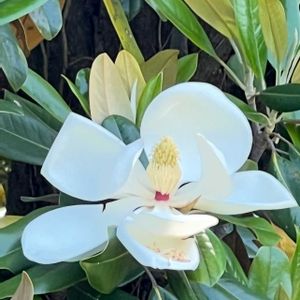 🌲🤍樹に咲く花🤍🌲 白い9枚の花被片からなる 大きく碗状の花が上向きに咲く 直径約20cmになる花弁は 乳白色で肉厚 甘い香り🎶 泰山木(たいさんぼく) モクレン科