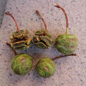 お早うございます。 東京は、午後から雨の予報 久々のメタセコイヤの実 まだまだ硬そう❗ 雨でもっと膨らむのかな?