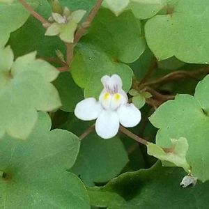 🌱💙💜野に咲く花💜💙🌱 (道端のブロック塀) 花は小さく約8mm 唇形花 花の後部には短い距(きょ)がある。 葉っぱは手を広げたような形 つるでどんどん伸びます🎶 蔦葉海蘭(つたばうんらん) オオバコ科