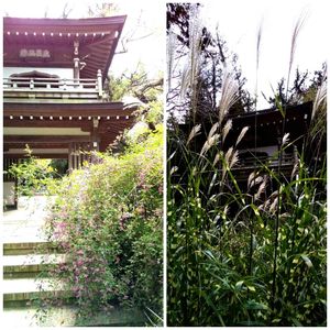 ➡️は、葉が斑入りの珍しいススキ。 ⬅️は、同じく鎌倉浄智寺の山門と萩❤️