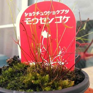 サスマタモウセンゴケ深紅。欲しくて欲しくて探してネットで買ったけど、あっさり枯らしました、なので、二度目の購入。ホームセンターで売ってるのがびっくりだわ。