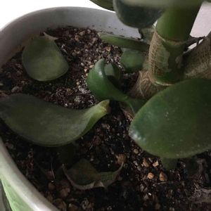 金の成る木が葉を落としてました。 😍あ、やっと葉挿し出来る〜 と、自分では切り離せなかった落葉を喜んだけど… よく見ると何枚もの葉が枯れてます。 つまり…水不足?