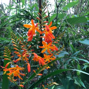 青空に向かってのびのび咲いていた💓今日のお花ヒメヒオウギ水仙(クロコスミア・ルシファー)💕 とても綺麗な朱色❤️🧡❤️のお花でした😍💖 🏷️ビタミンカラーに参加させて頂きます🥰