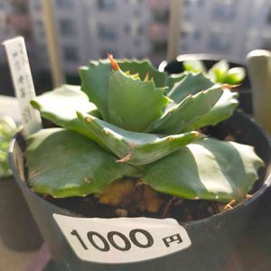 多肉さんのことはよく知らないんですが、皆さんのpic見せていただいて、とても可愛いなぁとちょっと興味津々💚これは買わないけどパチリさせてもらいました😍キレイでした💚アガベ 王妃雷神さん💚