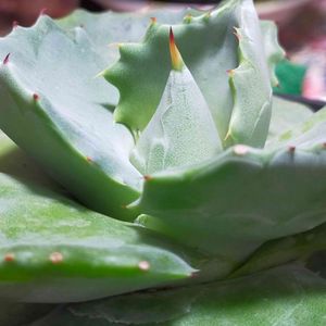 アガベ 王妃雷神 我が家に迎えて三枚目の赤ちゃんがチラッと︎💕︎︎ チョロっと角立てて︎.•♬