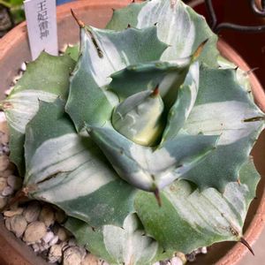 小ぶりなアガベ、王妃雷神。買ったと気の名前は「濃厚クリーム斑」……黄色っぽい斑入りだった。だけど今では白。色、戻らないかなー。