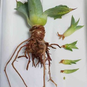 アガベ 王妃雷神ベイベー 先月解体したベイベーをハイドロボールで根だししました。 気づけば大きくなってるや~ん🎵 土に戻してあげましょ💞