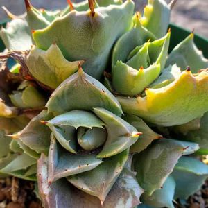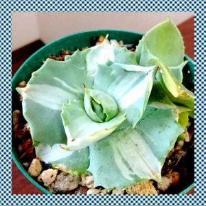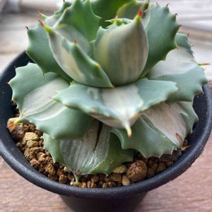おはようございます。アガベ王妃雷神錦です❕ 王妃と雷神? 多肉のネーミングは面白いですね❗️ 葉が厚いので私は「ぽっちゃり姫」と呼んでます‼️