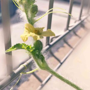 鉢植えのコロタン(メロン)🍈 株はとても大きくなったけど、雌花が付かなくて失敗かなーと思っていたら、雌花がやっと付き始めました🌼 今朝、人工授粉🐝 1つでもメロンがとれますように🛐
