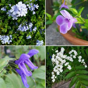 カリオプテリスサマーソルベット咲きました😁🌺🍀葉も斑入りでお洒落な感じです☺