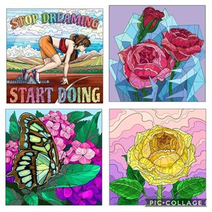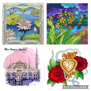 おはようございます🥰 塗り絵4枚 眼の覚める様な色合いですね😳😅