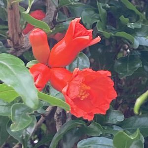 おはようございます 朝撮りです 🏷️今日のお花 ザクロ 花友の庭で咲いています チェリーセージ ホットリップス 可愛い🩷 1日はカレンダーの日 参加します