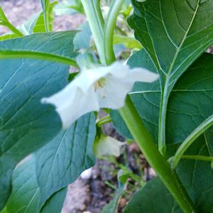 川沿いの土手に一輪白い花が… あ…いちど通り過ぎたが戻って…📱パチリ なんだろう🙄🙄🙄 ググってみたらホオズキって… かわいいね🤍💚 今日の花でした☺️
