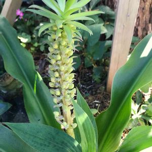 ユーコミス パイナップルリリ― 徐々に咲いてきてます。