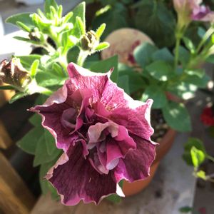 おはようございます☁️ ペチュニア ジュリエット モダンワイン🌸 こちらは植え付けて25日くらいかな。 花をバッサリ✂️してピンチして、やっとここまで。 かわいいお花がモリモリに咲きますように💕 今日も良い一日になりますように✨
