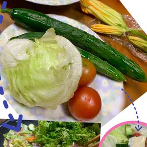 挿し木に☔も良いねと思ってたらレタスがァ~ (´இ□இ`。)° 溶ける〜⎝。⌓°⎞ 虫除けトンネルの中、あれ!急に溶けてる😱慌てて収穫 もっと大きく予定だったのに〜 でもサクサク美味しい〜😋💓💞 最近収穫野菜の焼きそばと。 👩🌾収穫野菜 レタス(あと1株雨避け、他溶けた) 中玉トマト(赤色、初❣️) キュウリ 焼きそばの既に収穫野菜 キャベツ(シュピッツコール.パリパリ) 玉ねぎ(紫💜) カラシナ(辛い、美味しい😋おにぎり漬物にもしてます) ズッキーニ(幼果) 昨日 庭作業もしたけど、ペチャニアも〜⎝。⌓°⎞ 雨に強いタイプと思い込んでました。 ☆レタス、中玉トマト、キュウリ イトコ宅播種苗
