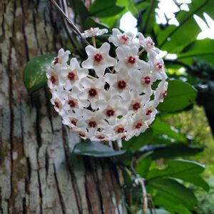 クルチ(リュウキュウコクタン) の木に🌳這わせている ホヤ・カルノーサが ツルの先に まんまるく咲きました🌸◦°