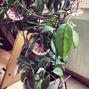 【Hoya 桜蘭】 😊この子は母の育ててる🌸サクラランです 今年も咲きました👏☺️お見事✨ 肉厚でキレイな星型の花びらは、とても可愛らしい😍 べっぴんさんだね〰💕