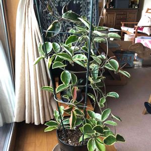 実家に帰省しました。 今まで見過ごしていたこの鉢、よく見たらホヤでした。 正式名称わかりませんが、サクラランということで。 こんな立派なもの、売ってたら結構するのでは??と思います。早速なん節か切って挿して持って帰ろうと思います。
